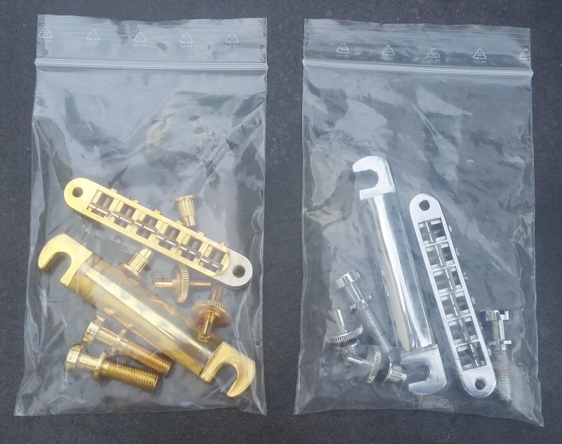 - stop bar et chevalet Gibson Gold (player, issu d'une ES 345 de 2012 donc un peu "vieilli", le gold s'efface un peu par endroit sur le Tom cause frottements avec la main) : 50 euros