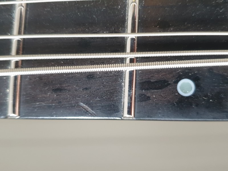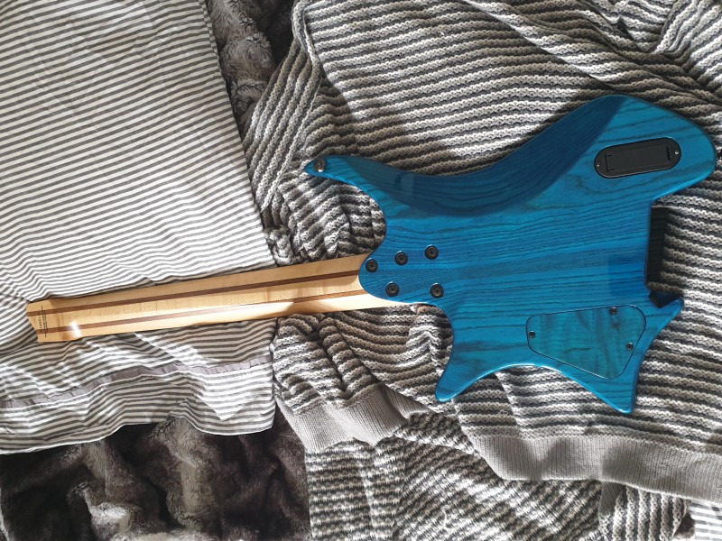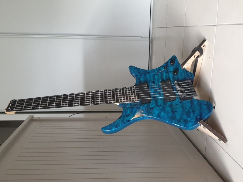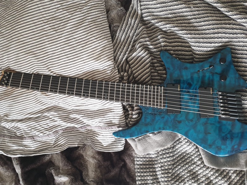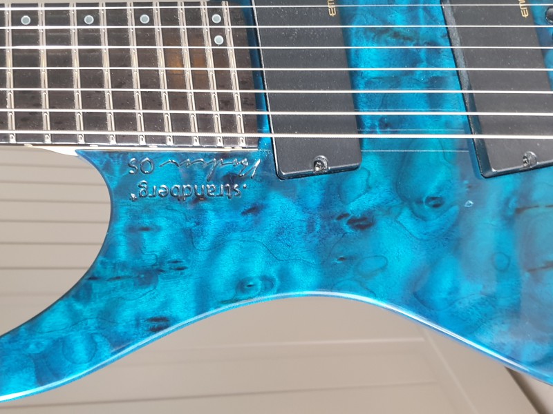 Bon état mis à part deux petits pocs pris en photos, mis à part ça les cordes sont de Strandberg en accordage standard, livrée avec sa housse, son stand en bois, et ses outils.