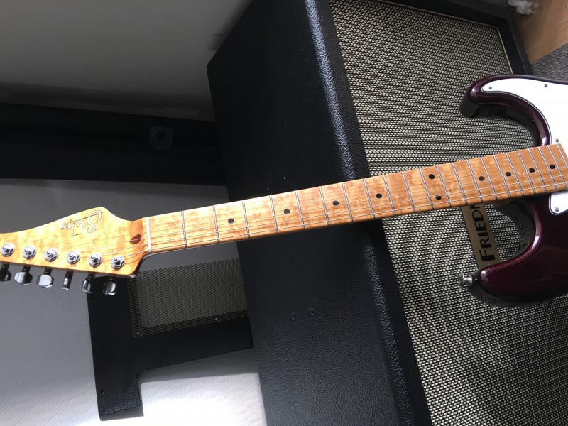 luc.triumph Custom Méga utilisateur #1 Publié par luc.triumph le 18 Nov 2018, 21:00 Tbe Micros V54 et dsh Profil de manche even C radius 10/14 Maple bird eyes, frettes inox Mecaniques a blocage Corps swamp ash Coloris black cherry 3.3kgs Gig bag Suhr Suhr cs Suhr maple ---------------- Prix de vente : 2100 euros ----------------