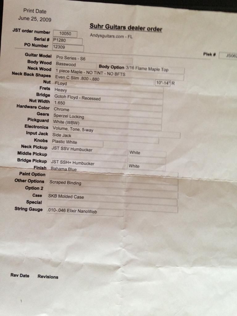 Suhr Pro Serie S6 achetée en 2009 destinée au marché américain en état mint.