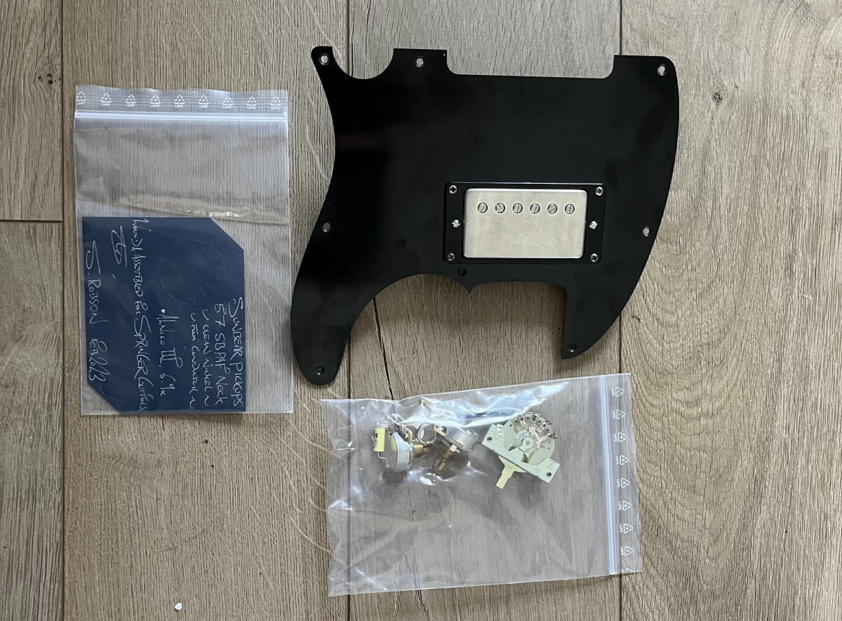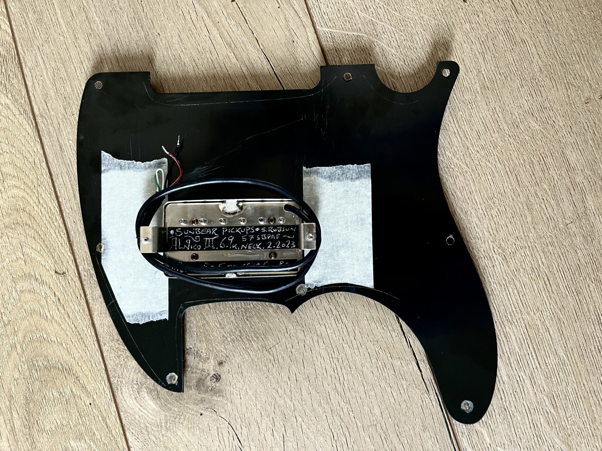 Je vends un pickguard acheté directement chez Suhr pour une Suhr T, monté avec un micro boutique Sunbear.