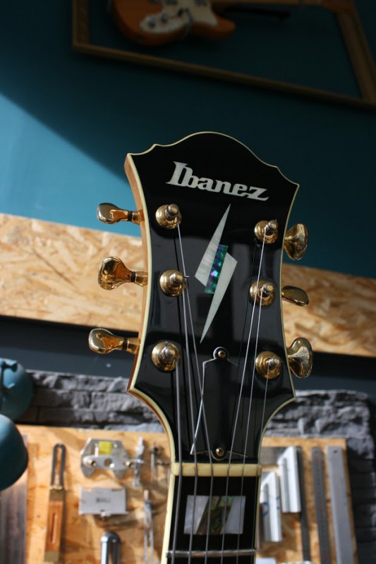 Ibanez pm 100 de 1996 en très bon état (ceux qui me connaissent savent que je suis un peu maniaque avec mon matos), ni rayure, ni poc. L'accastillage a perdu de son brillant, néanmoins.