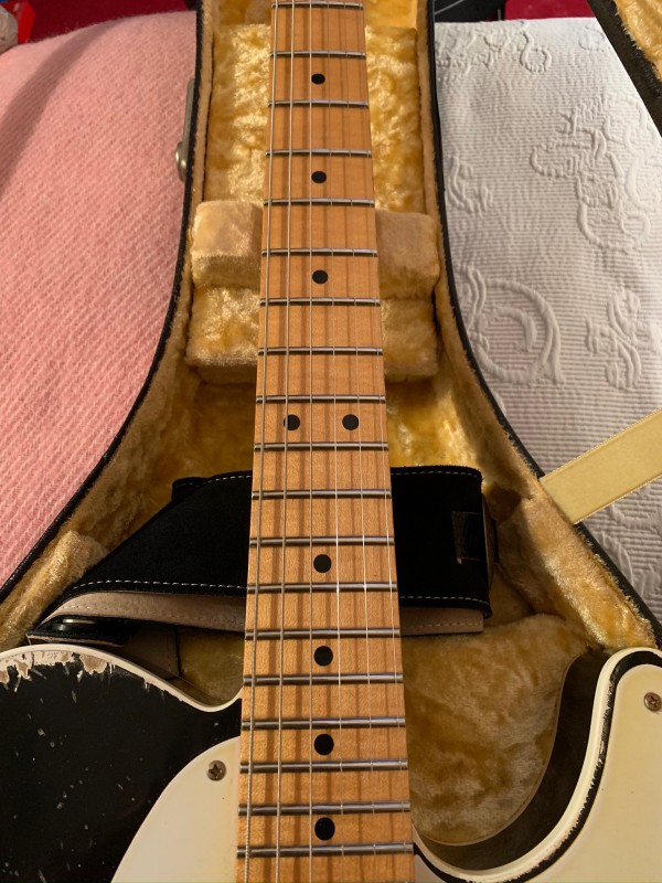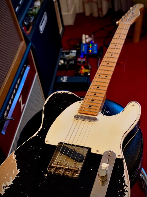 J’ai pris pour inspiration la Tele du guitariste de blues originaire de l’Ile de Man Davy Knowles (photo en N&B).