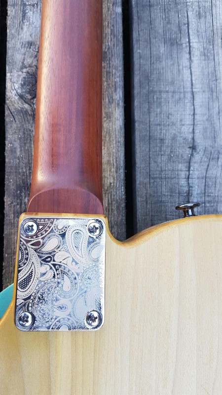 Paisley magnifique, gravé au laser (en relief donc) par Wala Walla Guitar Company aux USA.