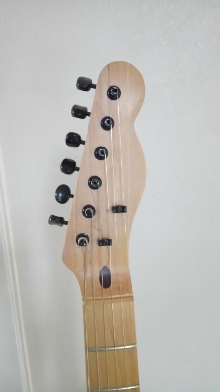 - manche érable, 1 pièce (pas de touche rapportée), le sillet a été remplacé par un modèle en os.