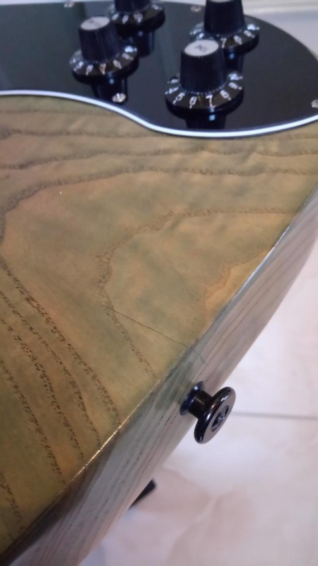 - corps frêne, 1 pièce. Teinté puis vernis "true oil"