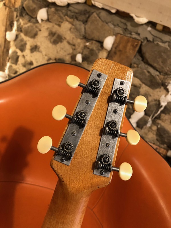 Manche à l'ancienne, tête snake, pas de trussroad mais vu la qualité du bois ça ne bougera jamais. Profil type Gibson 50's, chunky, mais pas énorme.
