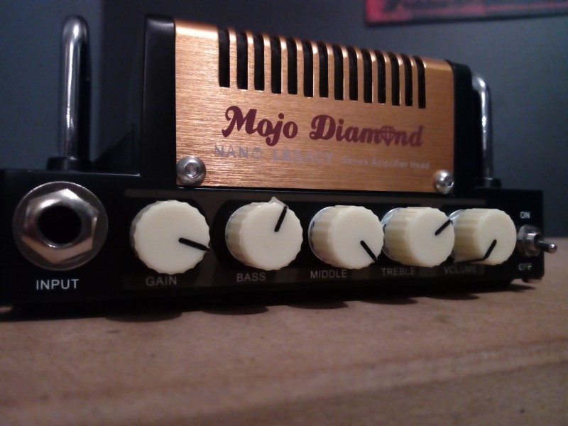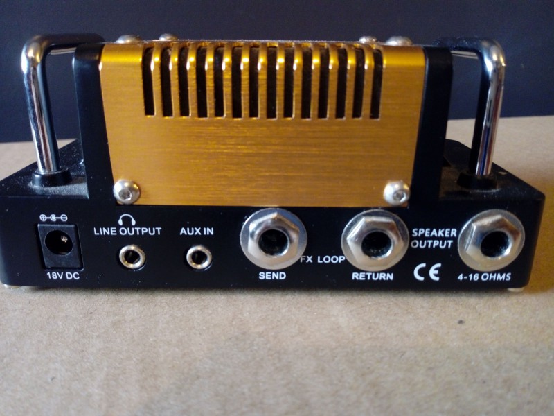 Tout y est sur ce petit machin : gain, volume, eq 3 bandes, sortie cab de 4 à 16 ohms, sortie casque et sortie auxiliaire.