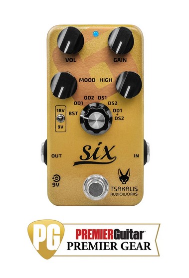 Tsakalis s'inspire de pédales d'overdrives légendaires, telles que la Timmy, la Blues Driver ou encore la King Of Tone, pour créer une pédale originale, la Six. Comme son nom l'indique, elle embarque 6 modes, un clean boost, 2 overdrives, 2 distorsions et une combinaison overdrive + distorsion.
