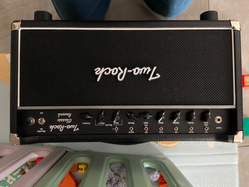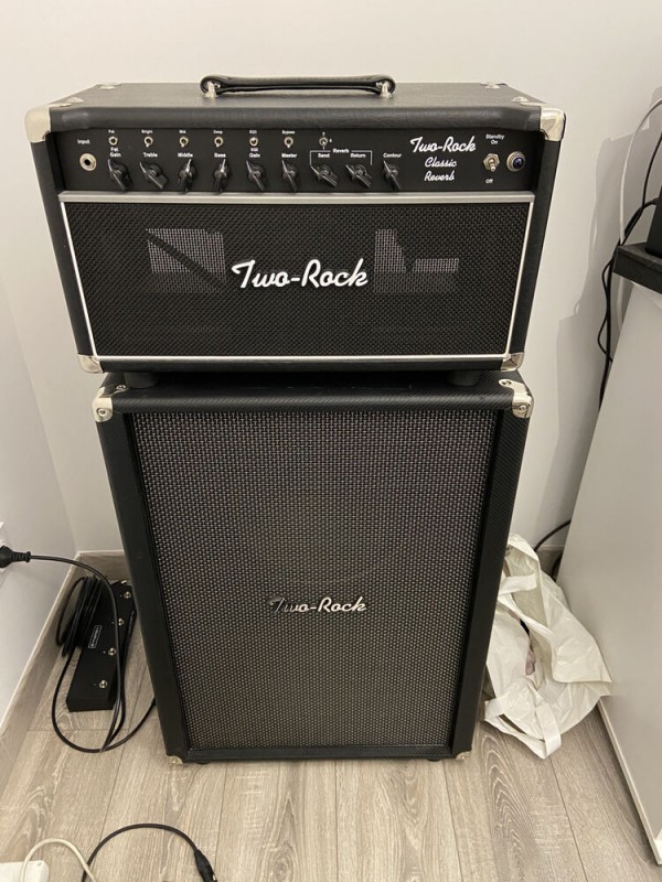 Il est composé d’une tête classic reverb 50w et d’un baffle 2x12 Two rock avec célestion Gold.