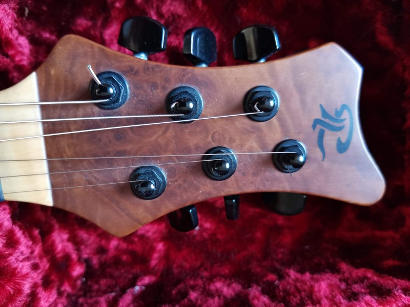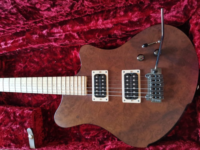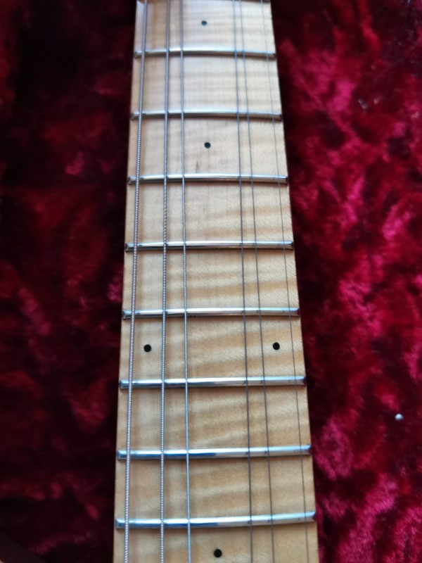 Les micros sont splittables et on peut aller des sonorités bien différentes. Le manche est un régal tant au niveau esthétique qu'au niveau des sensations, il est plutôt plat. Vous pouvez voir sur les photos que c'est une guitare vraiment belle, un accro à signaler juste avant la corne inférieure.