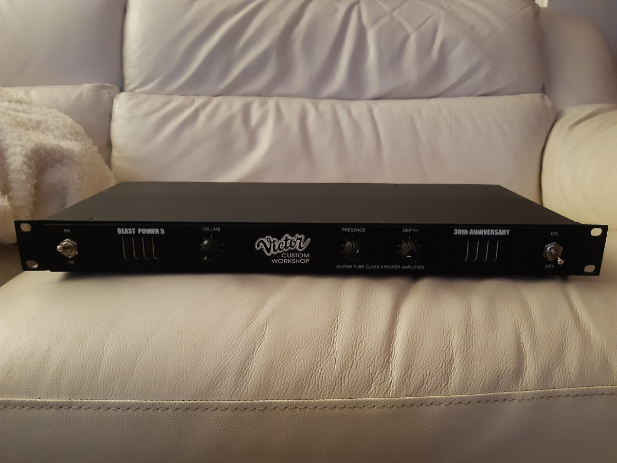Ce Beast power 5 est un class A qui tourne avec deux lampes de puissance 6v6 et une 12ax7. Il a un switch qui permet de le passer de 5 à 1 watt et deux boutons pour régler la présence et le depth. Il est donc très polyvalent et s'adapte à toutes les configurations.