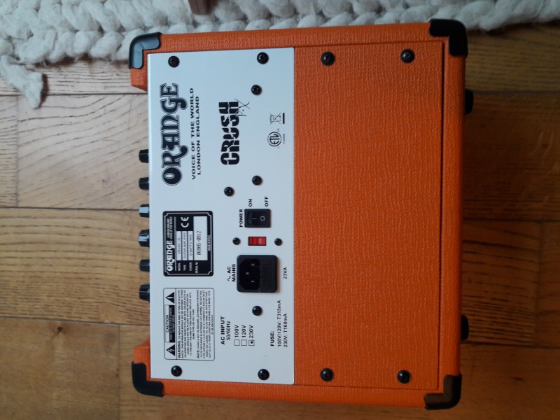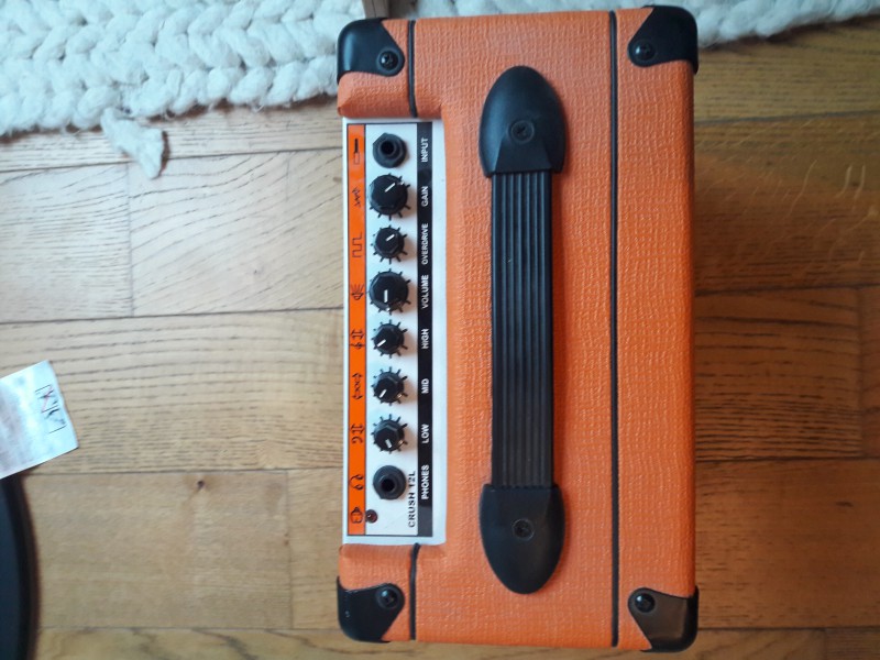 Je vends un combo Orange Crush 12L. C'est un ampli à transistor, 12W avec réglages low, mid et high, un master volume et réglage overdrive et gain. Il à également une sortie casque. L'ampli est comme neuf (pour ne pas dire neuf), j'ai du m'en servir une petite dizaine de fois et il n'est jamais sorti de la maison. Je le vends pour faire de la place !