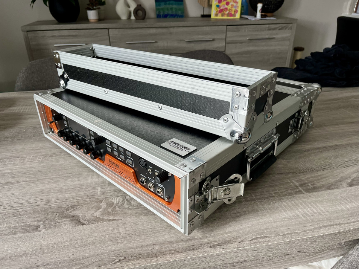 Il est monté dans un flight case 2U Music Store, super solide et encore bien propre, donc je propose : 200?€ le rack seul, 240?€ avec le flight case