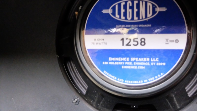 En excellent état, monté avec un HP Eminence Legend 1258, encaissant 75 watts, en 8 ohms.