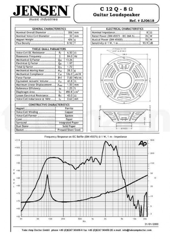 HP Jensen, 8 ohms, rendement de 93.2 db (ce qui permet de pousser un ampli lampe chez soi sans assourdir le voisinage.....) typé US.
