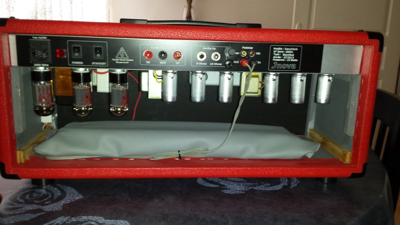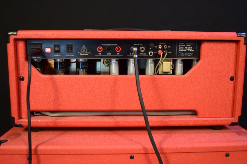 J’ai modifié la partie préamp comme un « 68 Custom Deluxe Reverb » de façon à avoir la reverb sur les deux canaux. Cette modification permet également le pontage des deux canaux. Super clean, super plateforme à pédale. Le break-up à fort volume est délicieux sur les deux canaux.