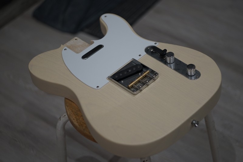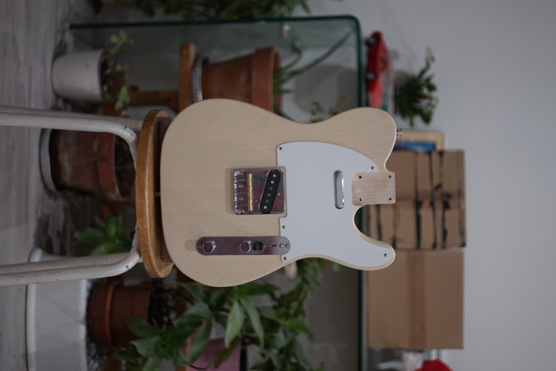 Un corps telecaster complet en frêne 3 parties de chez guitarbuild.uk, finition nitro toffee light butterscotch de chez rothkoandfrost , il y a des petites imperfections :2-3 pet de peinture et des rayures sous le vernis seulement au dos de la guitare dû à un mauvais ponçage de ma part, ça peut être une bonne base pour un projet relic.