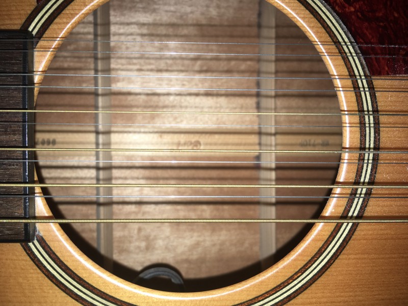 Manche acajou, touche palissandre, 20 frets, micro piezzo, sortie mono.