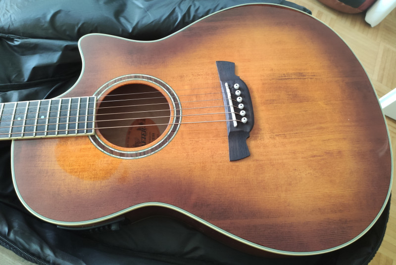 Très bonne guitare, son bien plein et bien ample, facile à jouer, en très très bon état, pas de rayuyre ou de poc.