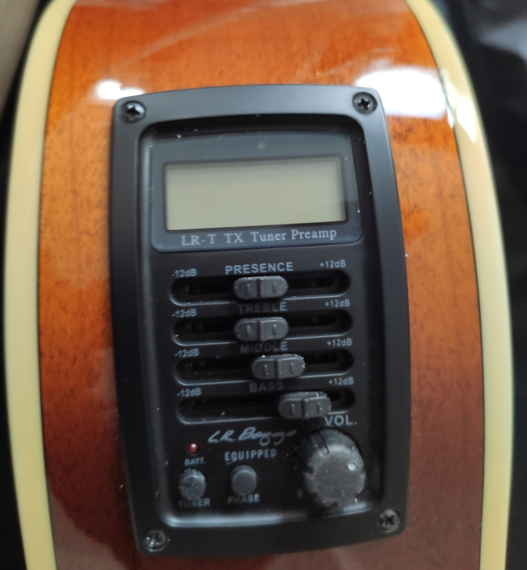 Elle possède un préampli de la marque LR Baggs, avec un accordeur intégré, un potard de volume, un bouton Phase, ainsi que des potards type "fader" : présence, bass, middle et treble.