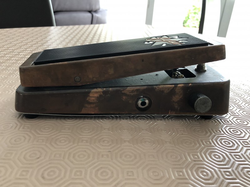 Boitier en métal type cuivre vieilli mat. Potentiomètre pour régler la course de la wah wah.