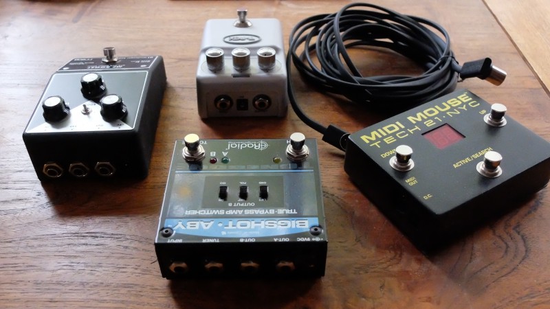 MOOG Minifooger: Booster / Buffer analogique, construit comme un tank et qui sonne vraiment bien, optimisé booster de gain (en façade) ou clean boost (dans la boucle d'effet).