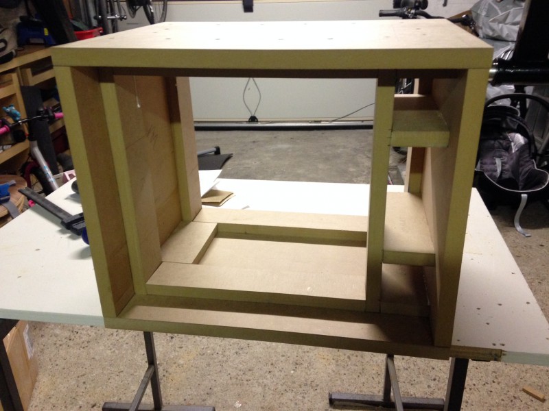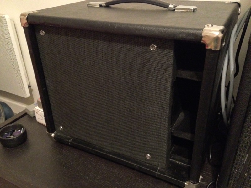 Envie de changement, je me sépare donc de ce cab fait maison aux dimensions exactes des plans fournis par electrovoice. Construction vissée/collée en mdf de 19mm, c’est du très costaud...et assez lourd, mais d’un rapport diffusion-ampleur sonore/encombrement imbattable!
