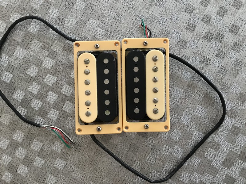 Il s'agit d'un set custom que j'avais commandé aux USA pour ma PRS; la particularité est que ce sont les bobines de couleur crème qui sont à l'extérieur du set, alors que traditionnellement sur ce modèle ce sont les bobines noires qui sont à l'extérieur (cad contre le manche et contre le chevalet).