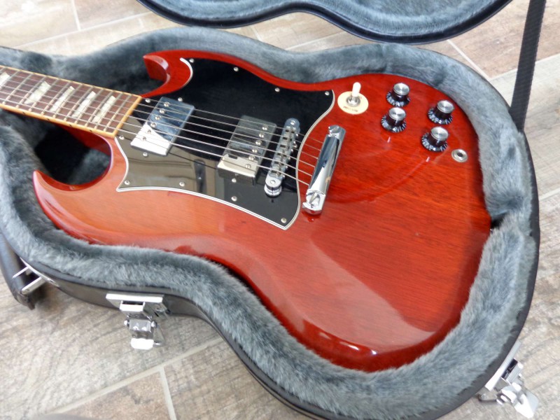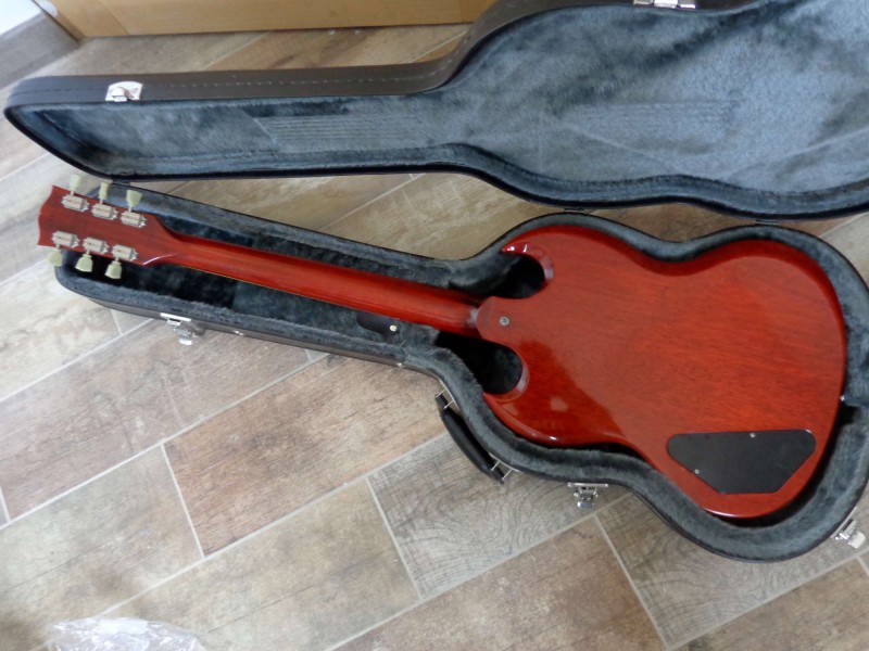 A notre que le case fourni est un case SG Epiphone. J’avais laissé le case Gibson à l’ancien propriétaire pour baisser un peu la note