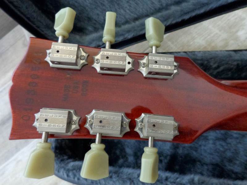 J’ai également changé la rondelle du sélecteur par un crème Gibson comme sur la SG de AY (le noir d’origine est fourni). Je n’ai plus en revanche la ’goutte noire’ du sélecteur que j’ai remplacée par un crème.