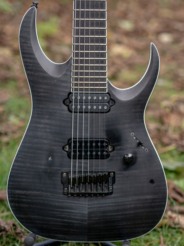 Le micro bridge d’origine a été remplacé par un Bare Knuckle Ragnarok. (Yes, it djents !)