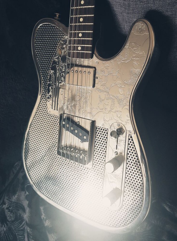 Ma Steelcaster est en très bon état. Le chrome est assez peu patiné. Elle a une finition Shiny Skulls Engraved aussi bien sur le corps que sur la tête du manche.
