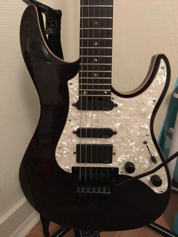 Pour les micros, nous avons ici un kit EMG SA,SA et EMG 81 (on est assez proche d’une Music Man Luke 1ère génération)