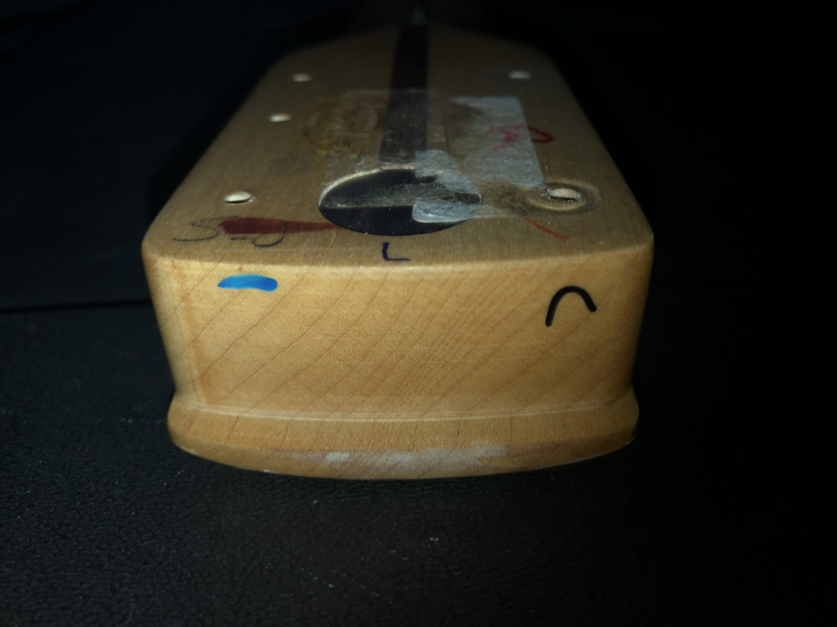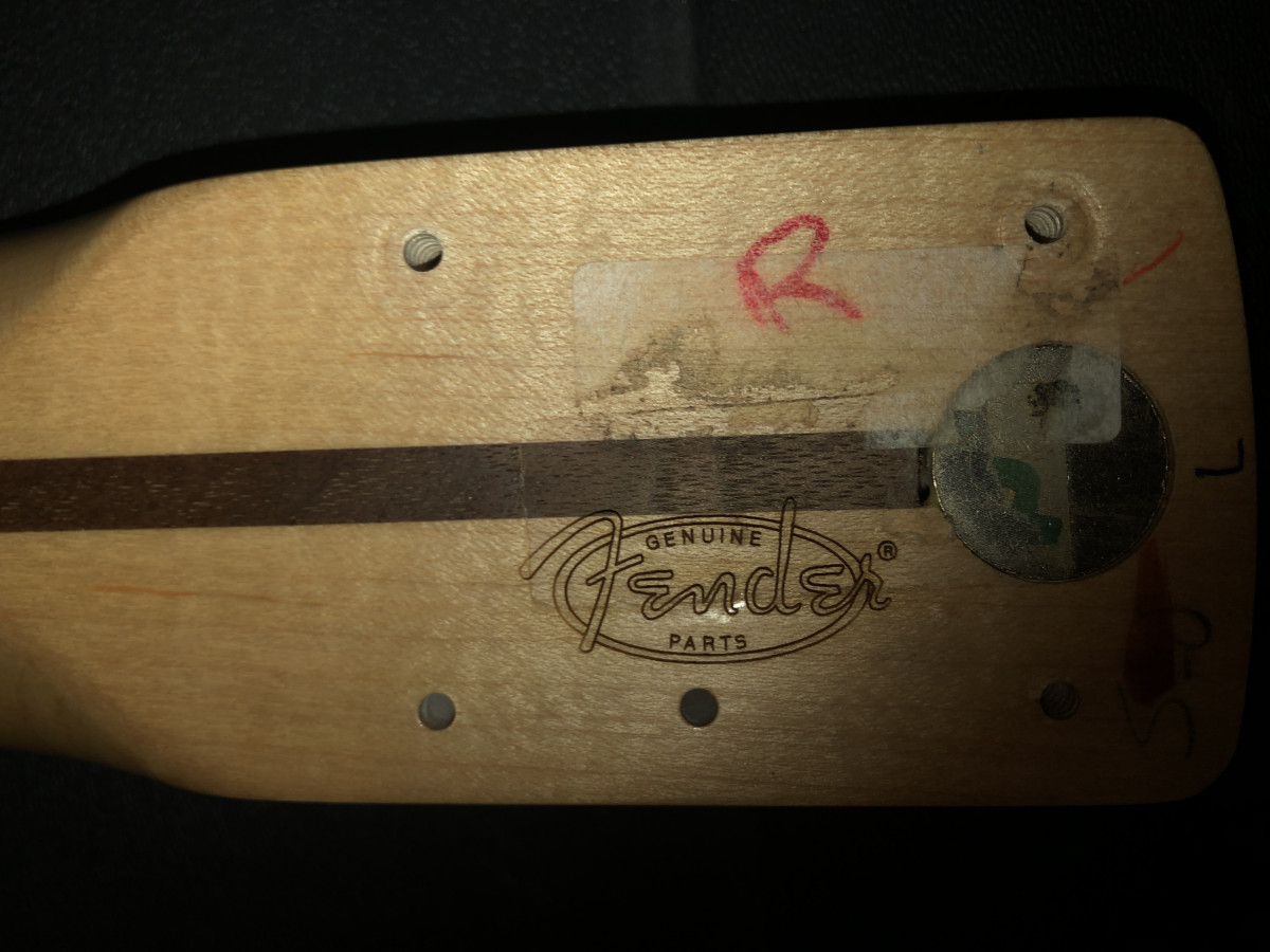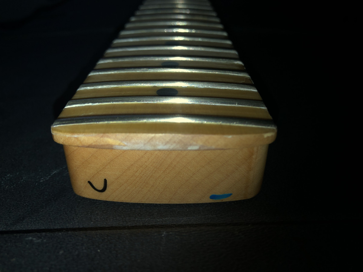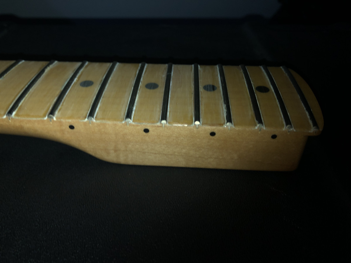 L'ancien propriétaire a retiré le vernis de la touche partiellement, probablement pour une tentative de relicage ou pour le revernir.