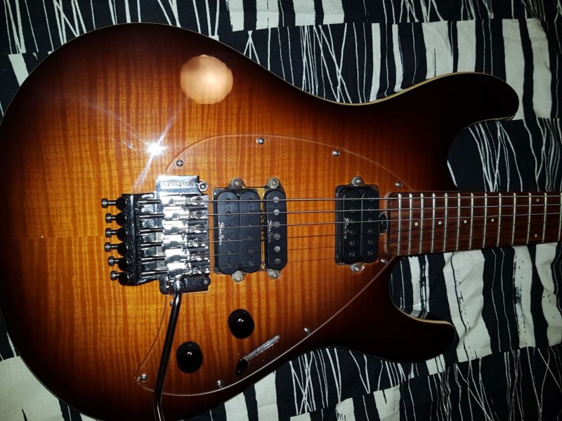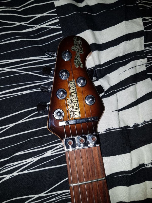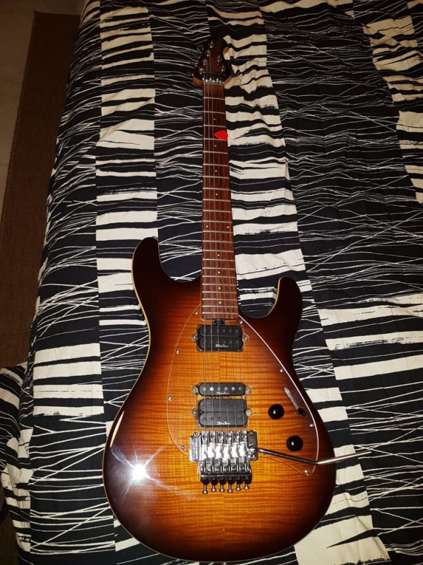 Je vends ou échange une Musicman Steve Morse Y2D signature tobacco sunburst. Edition spéciale car la tête est rapportée et le floyd repose sur la table.