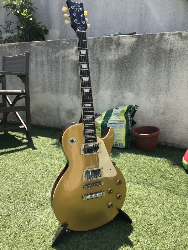 Jolie LP de la marque lyonnaise, facile à jouer avec action basse et de bons micros modern 77. Mecas un peu cheap mais sinon le reste est franchement honorable et elle a de la gueule. Le pickguard n est pas d origine, c est celui de mon Edwards. Je file une housse avec.