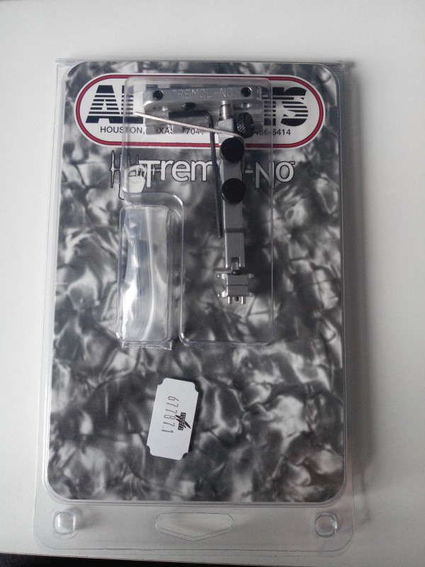 Descriptif : C'est un tout petit bidule qui s'installe à l'arrière de la guitare pour pouvoir "barrer" un pont flottant, Soit en Hardtail (c'est a dire que le pont ne bouge pas du tout) ou en "Dive only" (tremolo standard que l'on retrouve sur différentes guitares) De plus, cette appareil augmente votre sustain lorsqu'il est barré. Bref, pour ceux qui ont une guitare avec un floyd et qui désirent parfois changer ou expérimenter d'autre accordages, Le tremolno est pour vous !!! Acheté 80€ je le laisse partir a
