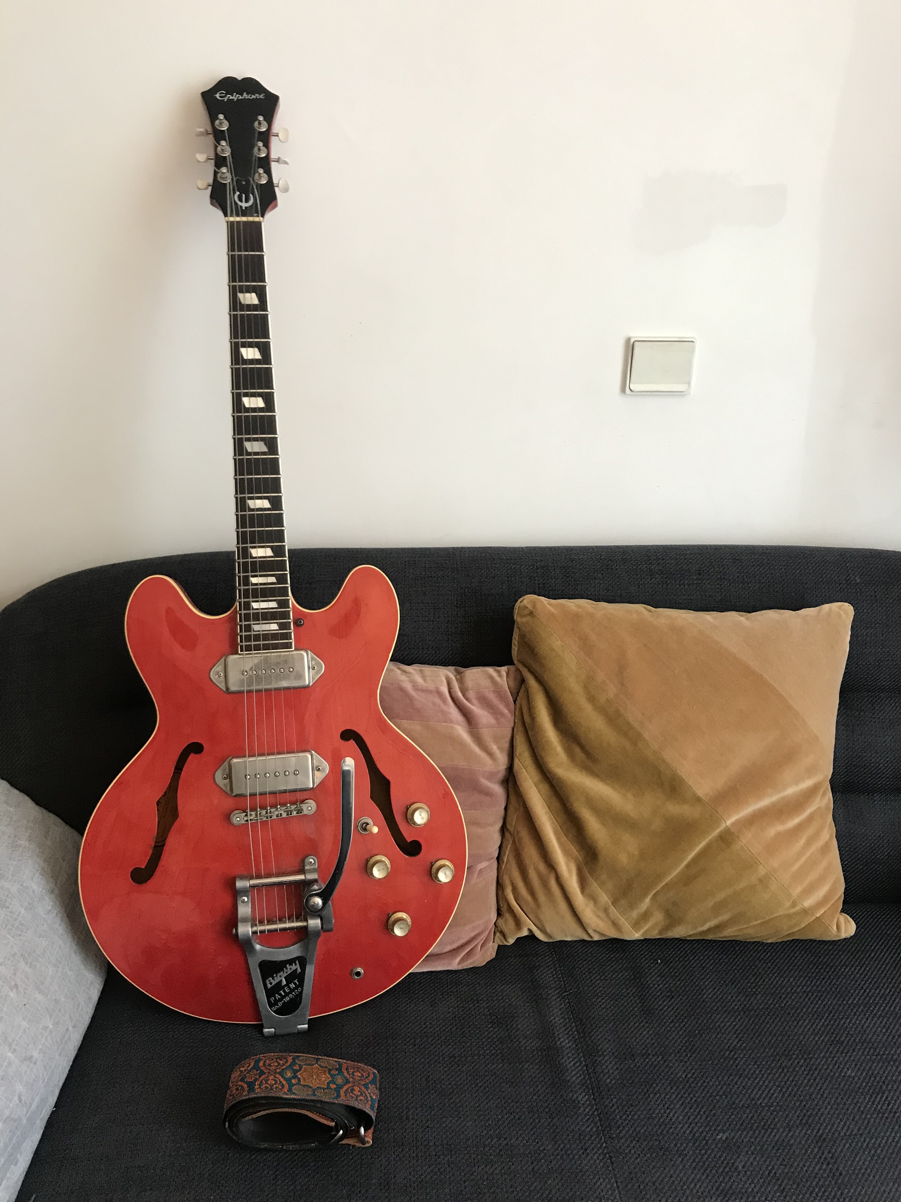 Je vends une épiphone Casino MIJ, fabriquée en 1989 à l'usine Terrada. Elle est équipée d'un Bigsby B5 et de micros Lollar (montés dans le cache d'origine. la boîte, le cache noir des Lollar et les micros d'origines sont fournis). Pas besoin de vous faire un dessin sur la qualité de l'ensemble, de la lutherie à l'électronique !