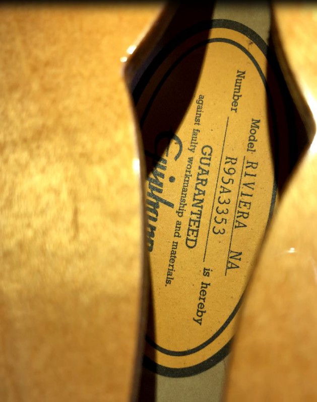Je vends cette Epiphone Riviera fabriquée en 1995 dans l'usine Peerless