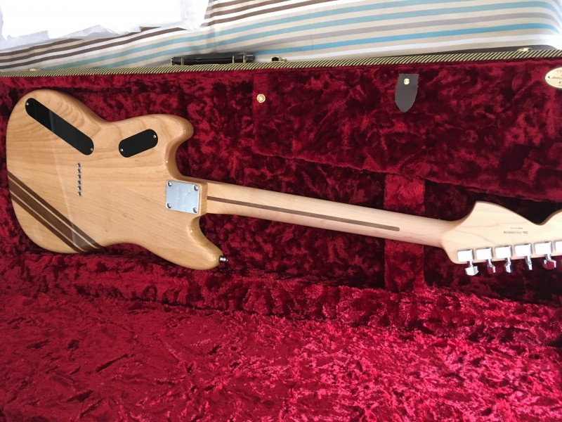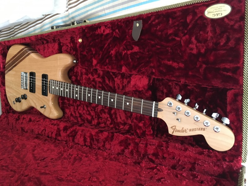 Elle a comme particularité d'être équipée de série de deux P90 single coil, d'un manche à la finition huilée très agréable au jeu et de bois très choisis. On peut également remarquer que le logo Fender Mustang est pyrogravé au laser sur la tête.