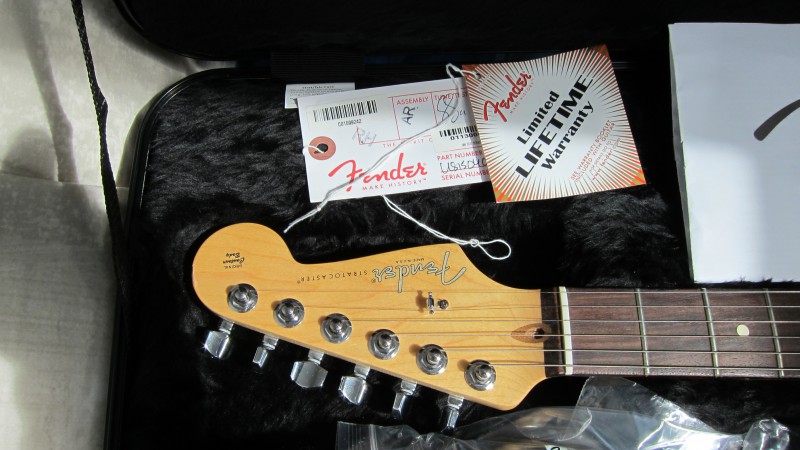 Je me sépare une partie de mon matériel. Cette Stratocaster AM Standard est en état quasi neuf (un très léger poc sur un angle au sommet de la tête). Elle a été achetée neuve en novembre 2016 (facture). Je l'ai peu jouée: je préfère mes Charvel finalement.