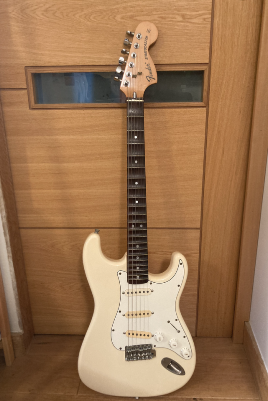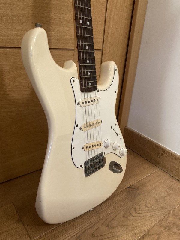 Je mets en vente ma strat japonaise, c'est une Fender ST72 en vintage white.