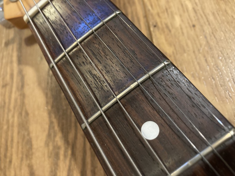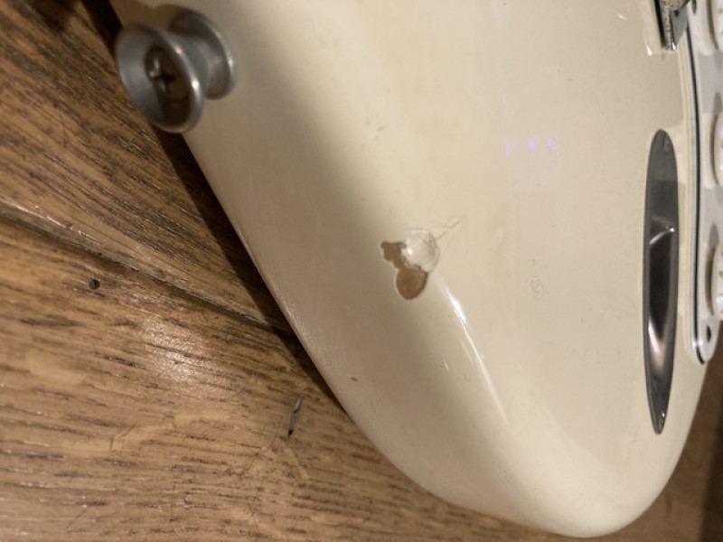Une jolie stratocaster MIJ de 92. Je l'ai depuis quelques années et je ne m'en sers plus. Elle est en bon état, en très bon état pour son âge. Quelques pocs sur la tranche, tout est sur les photos. Les frettes en bas du manche sont forcément un peu usées, cf photo aussi.