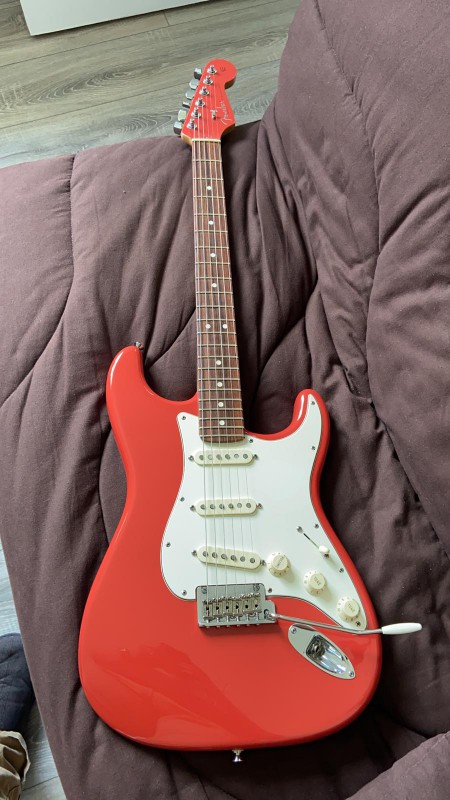 Je vends cette Fender stratocaster Special Edition American Standard matching headstock fiesta red de 2009.