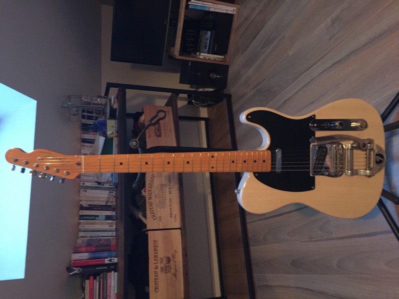 Je vends ma Fender Telecaster Bigsby CIJ translucent white de 2004/2005, achetée il y a une dizaine d'année. Très peu jouée depuis trop longtemps maintenant par manque de temps, je préfère que quelqu'un lui fasse bien plus honneur que moi. Elle a toujours été jouée chez moi et entreposée dans de bonnes conditions.