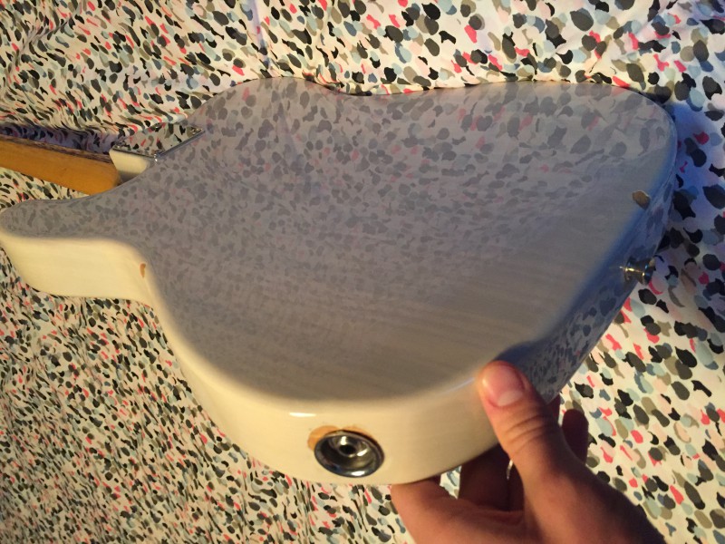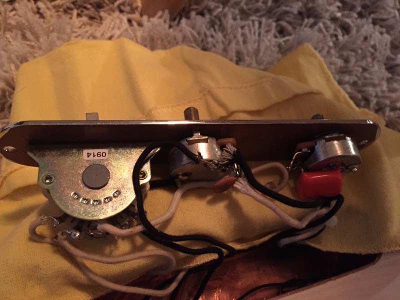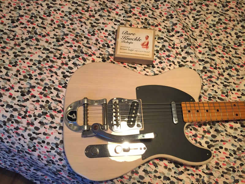 Elle est équipée de micros Bare Knuckle Brown sugar, d'une électronique upgradée (plaque achetée aux US avec sélecteur 4 positions, condensateurs orange drop...). Elle est en très bon état hormis trois éclats de vernis sur le dos du corps. Et elle nécessitera certainement un petit réglage pour donner sa pleine mesure.