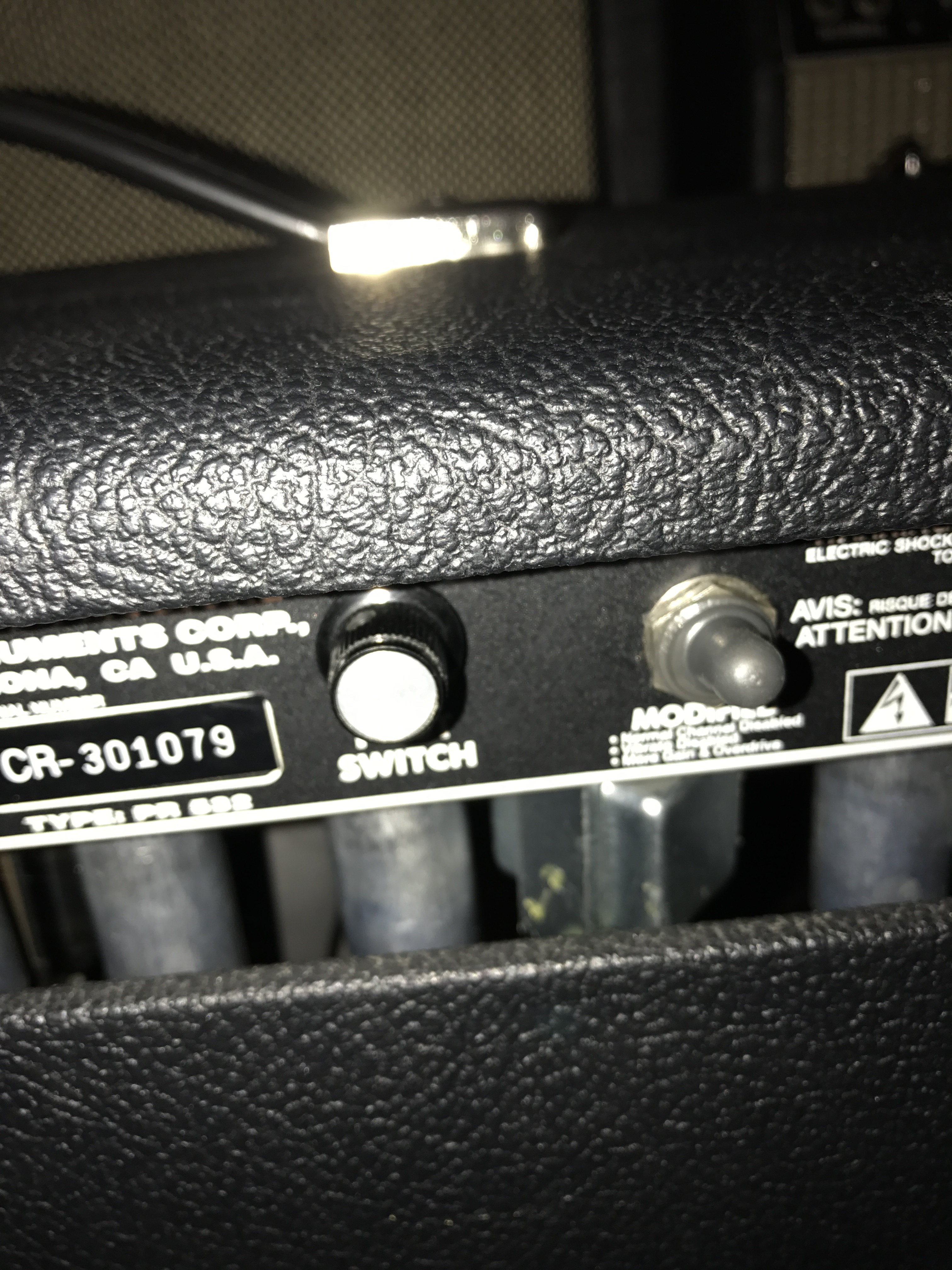 Il est vendu avec sa housse et le footswitch(petite precision,le ppimv a été installé a la place de la prise pour brancher le tremolo ,j'ai la prise jack d'origine fournie,le ppimv peut etre déplacé sur la deuxieme sortie hp par exemple sans aucun soucis,c'est vraiment pas grand chose)