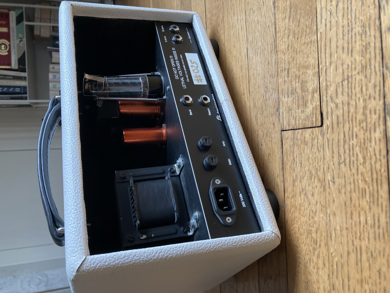 1 EL34 en puissance (EHX), switchable pour une 6L6 sans réglage de bias si c’est votre souhait.