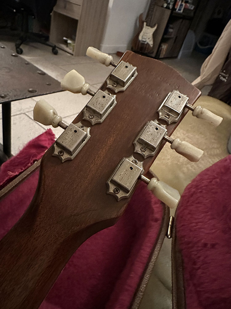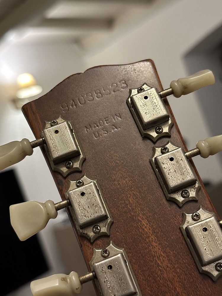 Numéro de série 94038523 (pour l'année du centenaire, cela se lit sur les 2 premiers chiffres, vérifié par téléphone auprès d'un conseiller Gibson Europe, c'est une exception à la lecture habituelle sur le 1er et 5e chiffre, vous pouvez le vérifier en cherchant "gibson serial number search" sur un célèbre moteur de recherche).